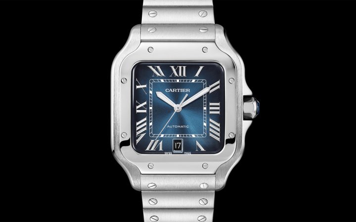 De subtiele blauwgradaties geven de Cartier Santos een sportief en jing gezicht De subtiele blauwgradaties geven de Cartier Santos een sportief en jing gezicht