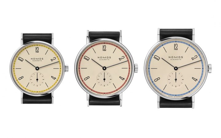 De drie Nomos Tangente Bauhaus modellen in 33, 35 en 38 mm De drie Nomos Tangente Bauhaus modellen in 33, 35 en 38 mm