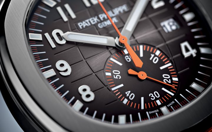 De gedetailleerde en karakteristieke wijzerplaat van de Aquanaut Chronograph Ref. 5968A-001 De gedetailleerde en karakteristieke wijzerplaat van de Aquanaut Chronograph Ref. 5968A-001